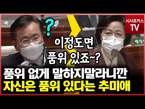 유상범 "품위없게 말하지마세요"라고 말하자 추미애 "이…