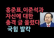 홍준표,이준석과 자신에 대한 충격 글 올렸다'