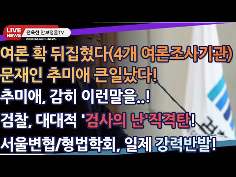 속보)여론이 확뒤집혔다-문재인추미애 큰일났다(4개여론조사기관)!!추미애,감히 이런말을..!!대대적 "검사의 난…