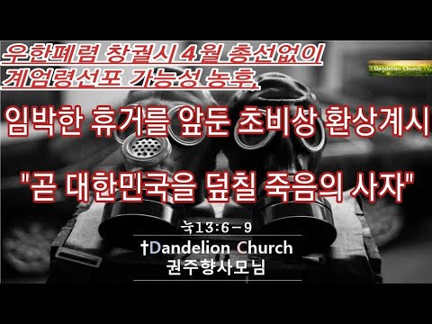 *[우한폐렴 창궐시 4월 총선없이 계엄령선포 가능성 농후, 임박한 휴거를 앞둔 초비상 환상계시 "곧 대한민국을 덮칠 …