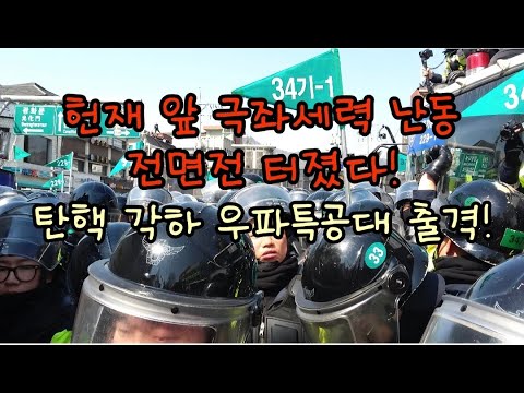 헌재 앞 극좌 난동 전면전 터졌다! 탄핵 각하 우파 특공대 출격.(250312)