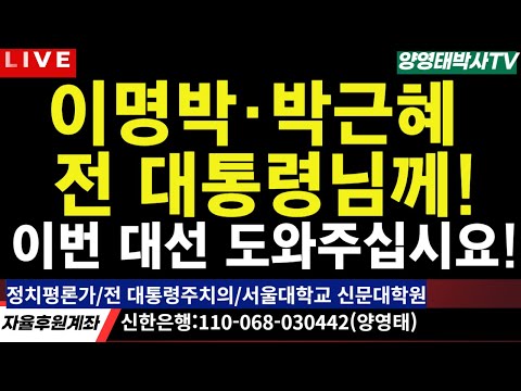 '이명박ㆍ박근혜 전 대통령 님께! 이번 대선 도와주십시요!/2025.04.17' 꽃사슴 양영태 0 719 04.17 11:04 https://youtu.be/whS6qIeWEoM + 31 ...