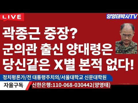 곽종근 중장? 군의관 출신 양대령 보기엔 당신같은 X별 본적이 없다! 더욱 특수전 사령관? 에라이~/2025.11.06